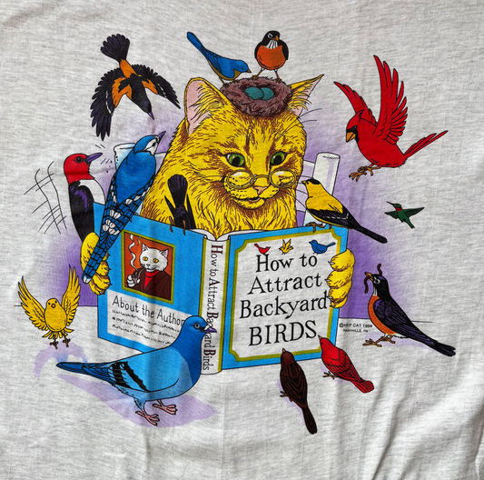 Vintage Cat Lover Graphic T-Shirt - "How to Attract Backyard Birds" Funny Cat Tee