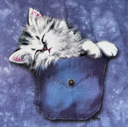 Vintage Cat Lover Graphic T-Shirt - "Sleepy Kitten in Faux Pocket" Funny Cat Tee