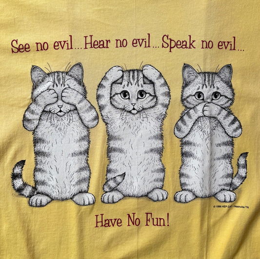 Vintage Cat Lover Graphic T-Shirt - "See No, Hear No, Speak No Evil" Funny Cat Tee