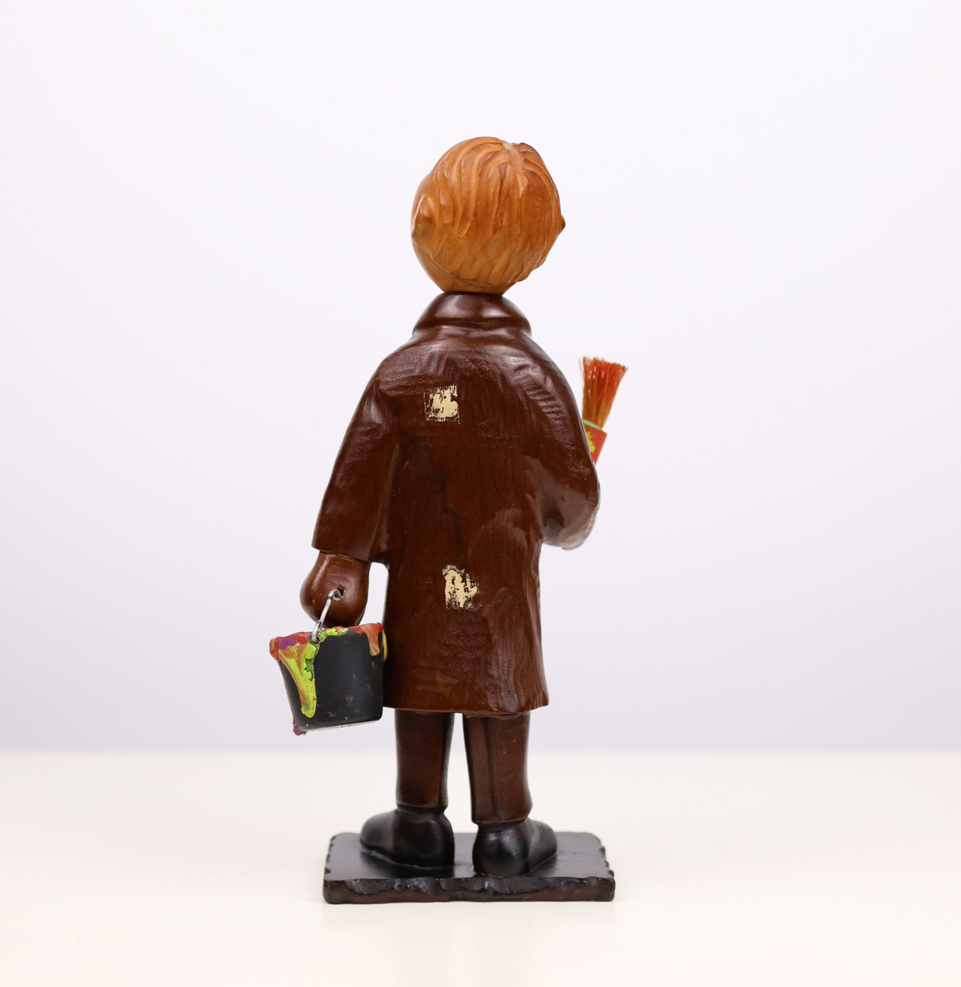 This charming midcentury figurine by Romer Italy captures the spirit of the artist at work, complete with splattered coat, oversized paintbrush, and an expressive face aimed skyward. Hand-painted in vivid, primary hues, this carved wooden piece blends humor, craftsmanship, and retro European design in a delightfully quirky form. We absolutely love him.