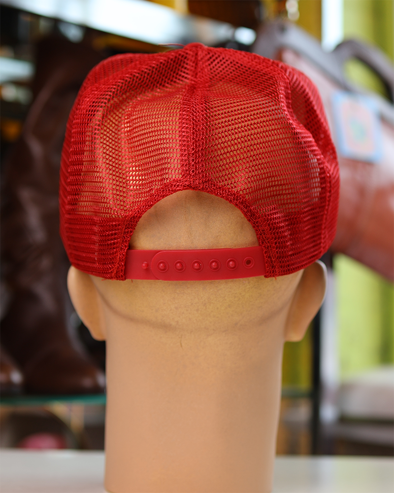 Straight from the roadside stop, this vintage novelty trucker hat features a bold graphic and cheeky phrase “I have a drinking problem, only one mouth and two hands". Printed on a bright red foam-front cap with a mesh back and flat brim, this piece is pure retro humor from the ‘70s or ‘80s era of raunchy, fun-loving dad fashion.