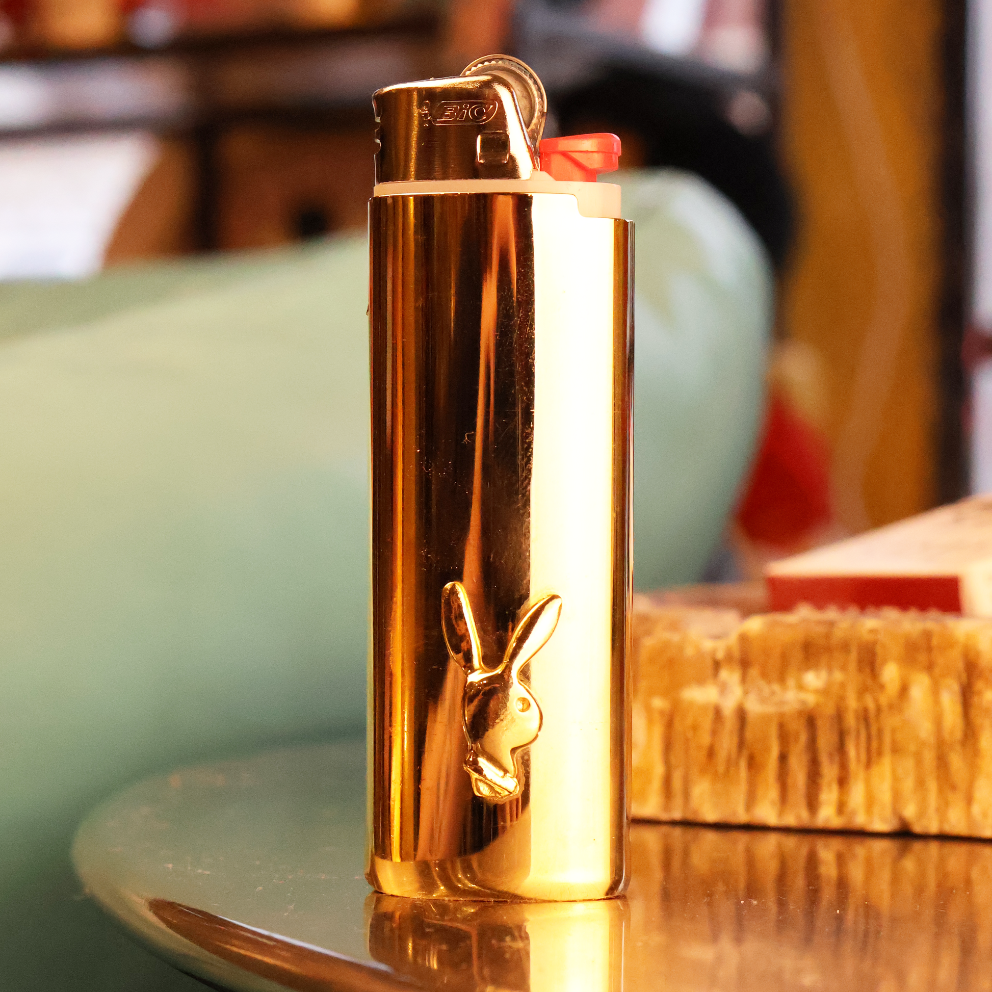 Add a touch of luxury to your everyday carry with this vintage bootleg Playboy gold metal lighter cover, designed to snugly fit a standard BIC lighter. Finished in a high-shine gold-tone metal and featuring a stylish Playboy Bunny logo, this sleeve offers both protection and epicurean personality. Ideal for collectors, fashionable smokers, or as a unique gift.