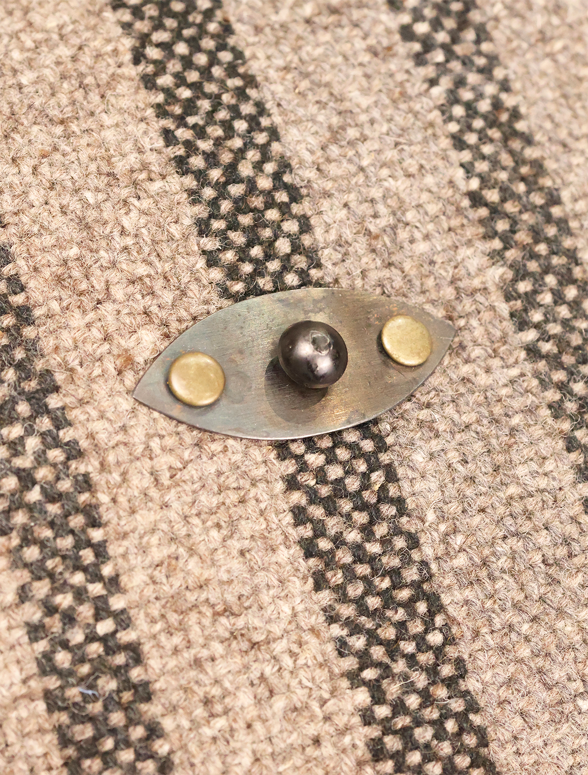 One-of-a-kind handmade bag from the 1970s. Crafted from thick, utilitarian wool in grey tones and finished with a rugged black leather flap and partial suede interior, this satchel blends function with timeless bohemian style. Features a toggle closure and adjustable leather strap.