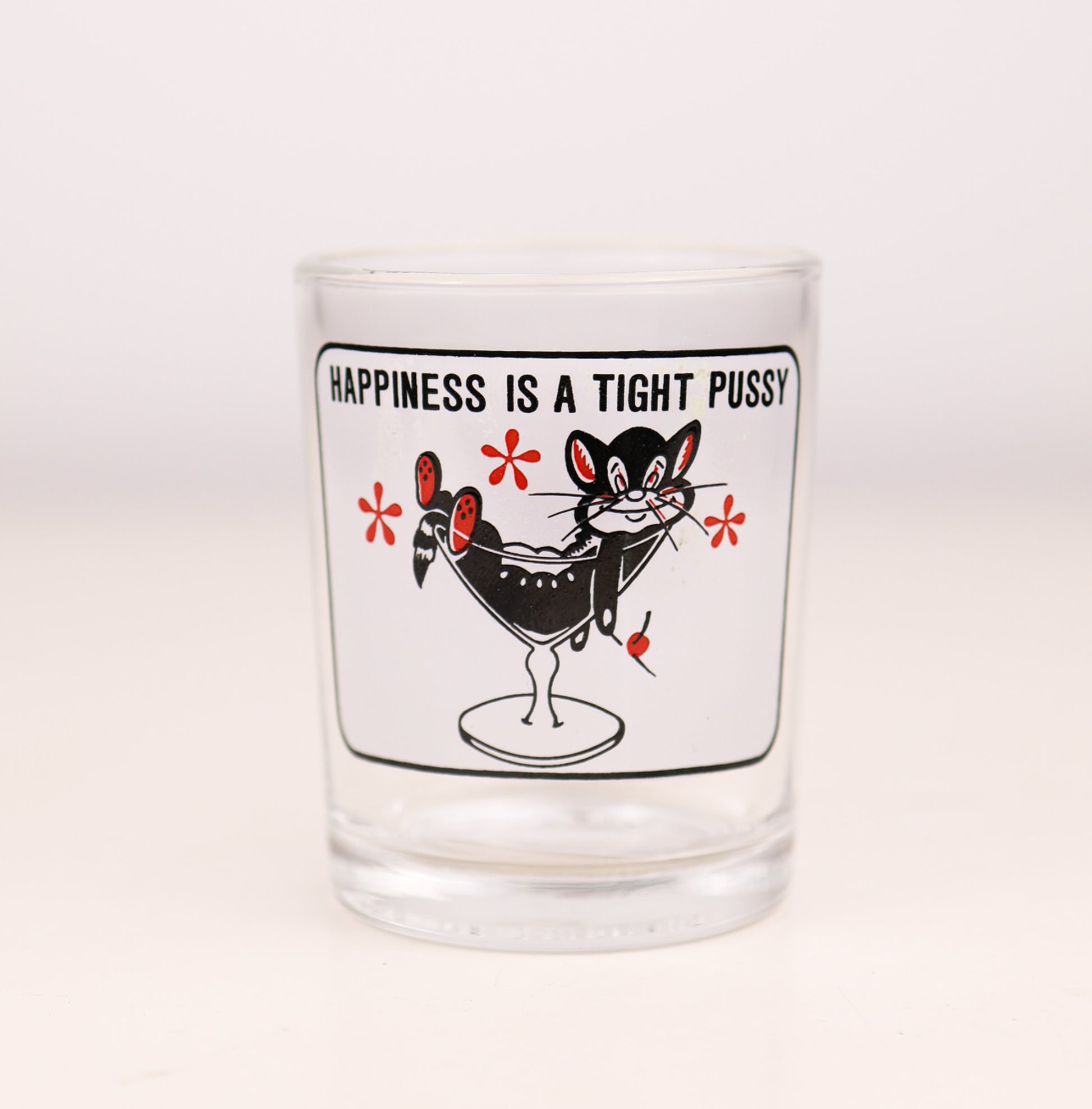 Looking to wet your whistle? Featuring a bold novelty graphic, this cheeky vintage shot glass is the perfect addition to your quirky home bar. Great for cat fans, pussy fans, or anyone who just likes a tight beverage now and then.