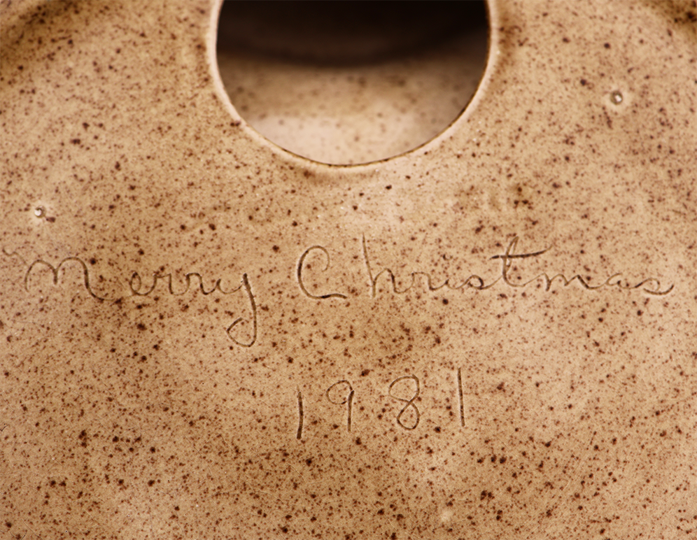 Handmade for a very special "Ms. Mabel," this extra large ceramic ashtray features a beautiful woodgrain-inspired finish and custom engraving on front and bottom.