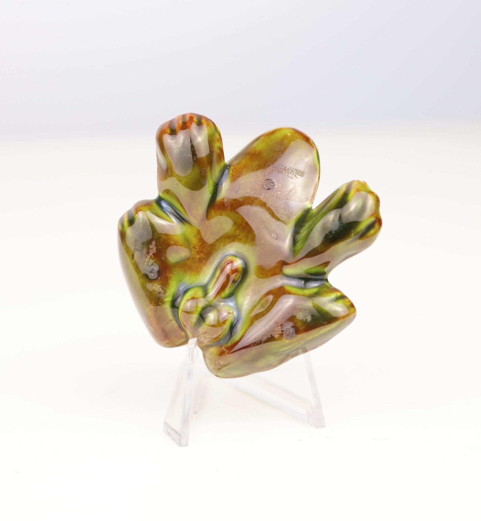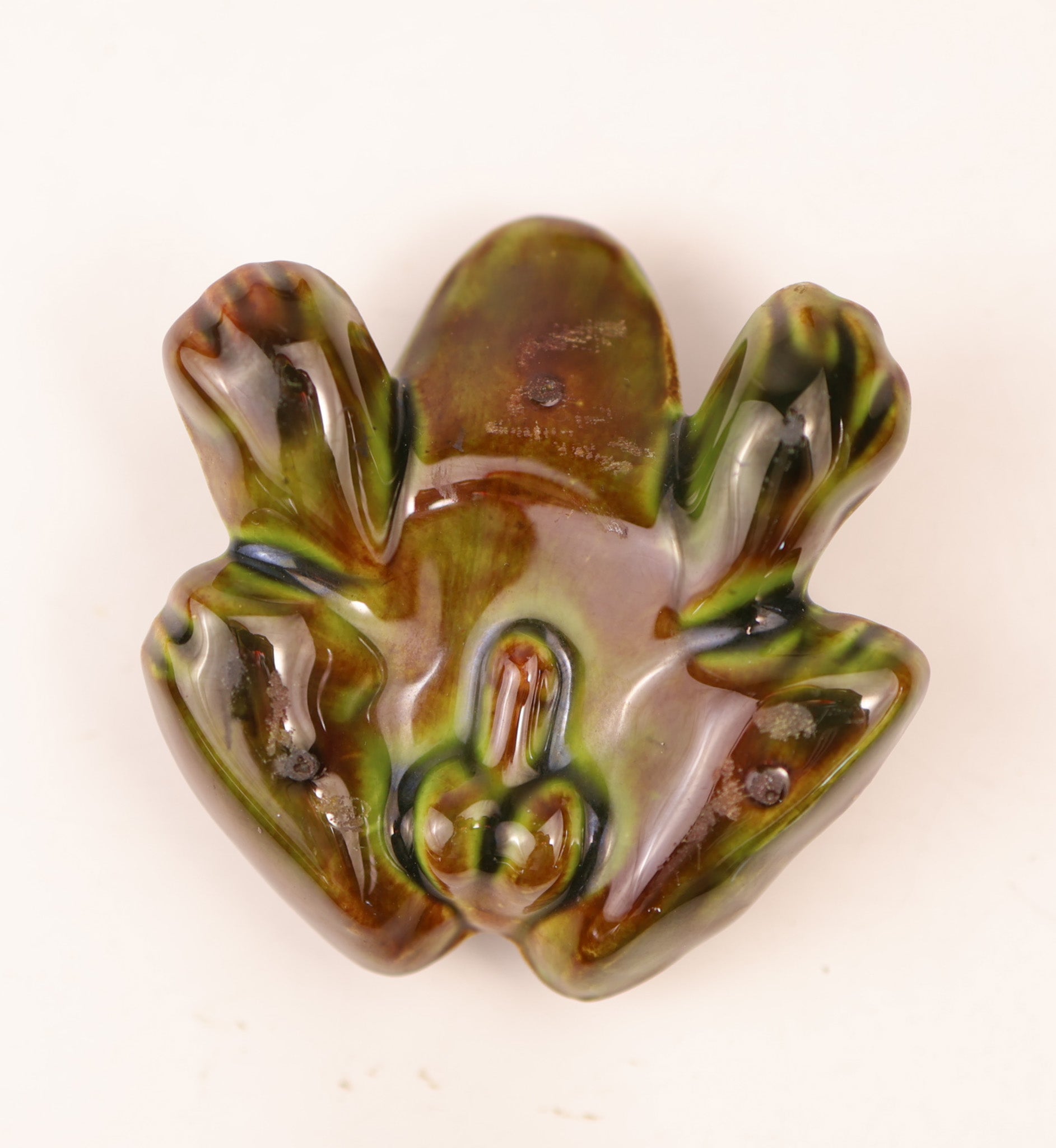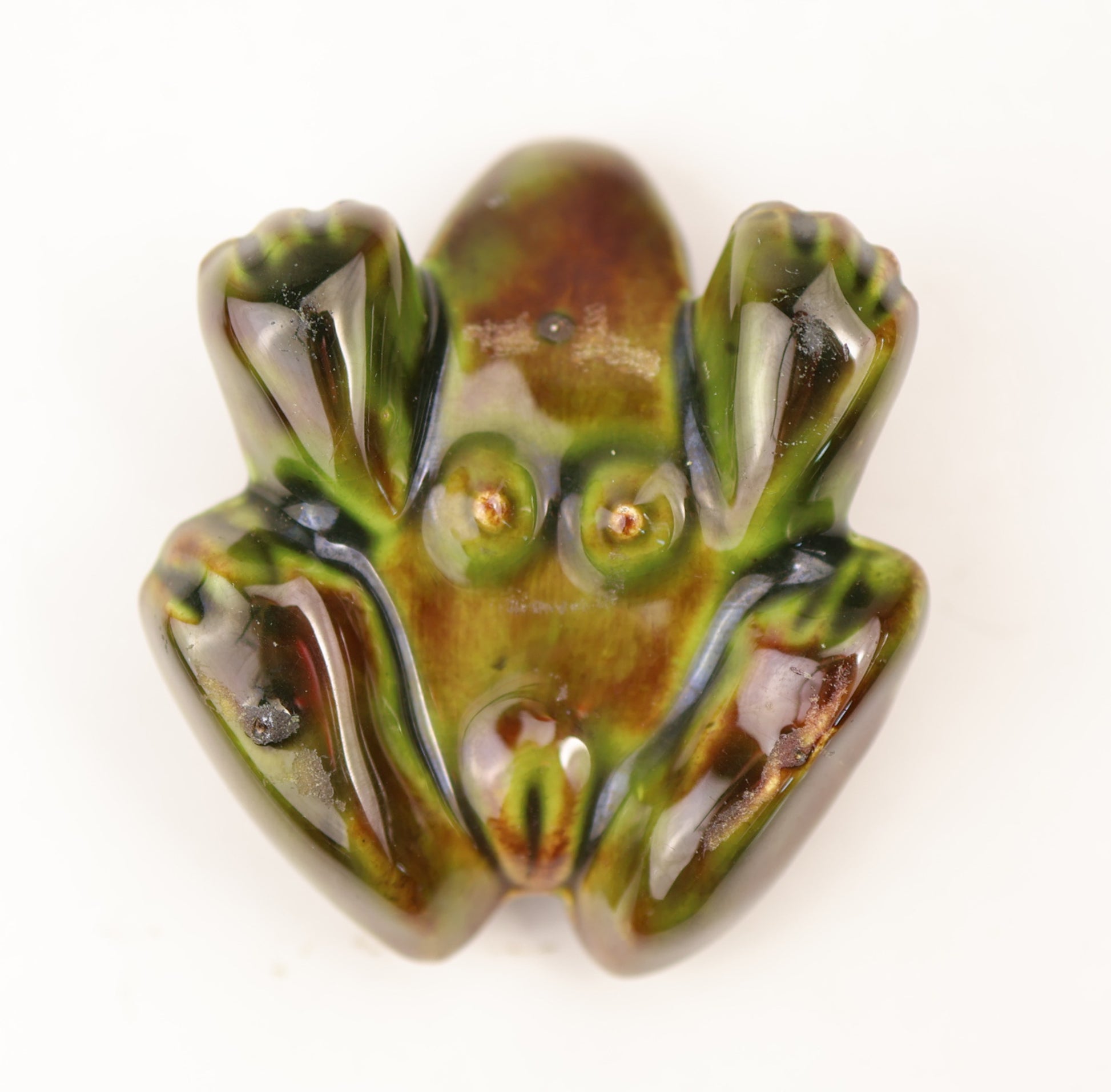 This vintage set of two "anatomically correct" frogs aren't bashful. Their high-gloss drip glaze in earthy green and brown tones is typical of American and Japanese novelty ceramics from that era. The suggestive anatomical detailing is… let’s say, "boldly rendered," adding a risqué touch that makes it a cheeky conversation piece or kitsch collectible.